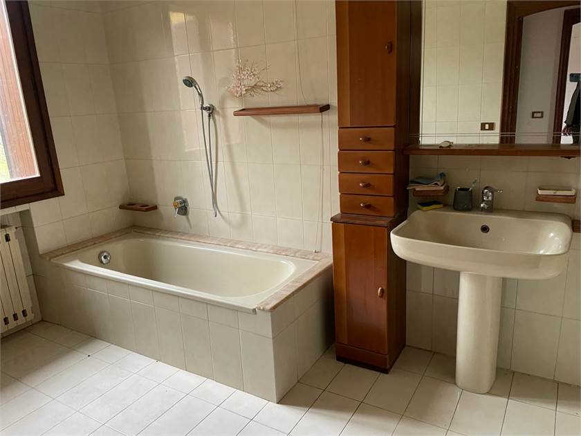 Villetta di centro in zona residenziale composta da salone con camino, cucina abitabile, bagno e giardino, al primo piano 3 camere, bagno e ripostiglio.