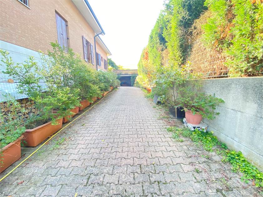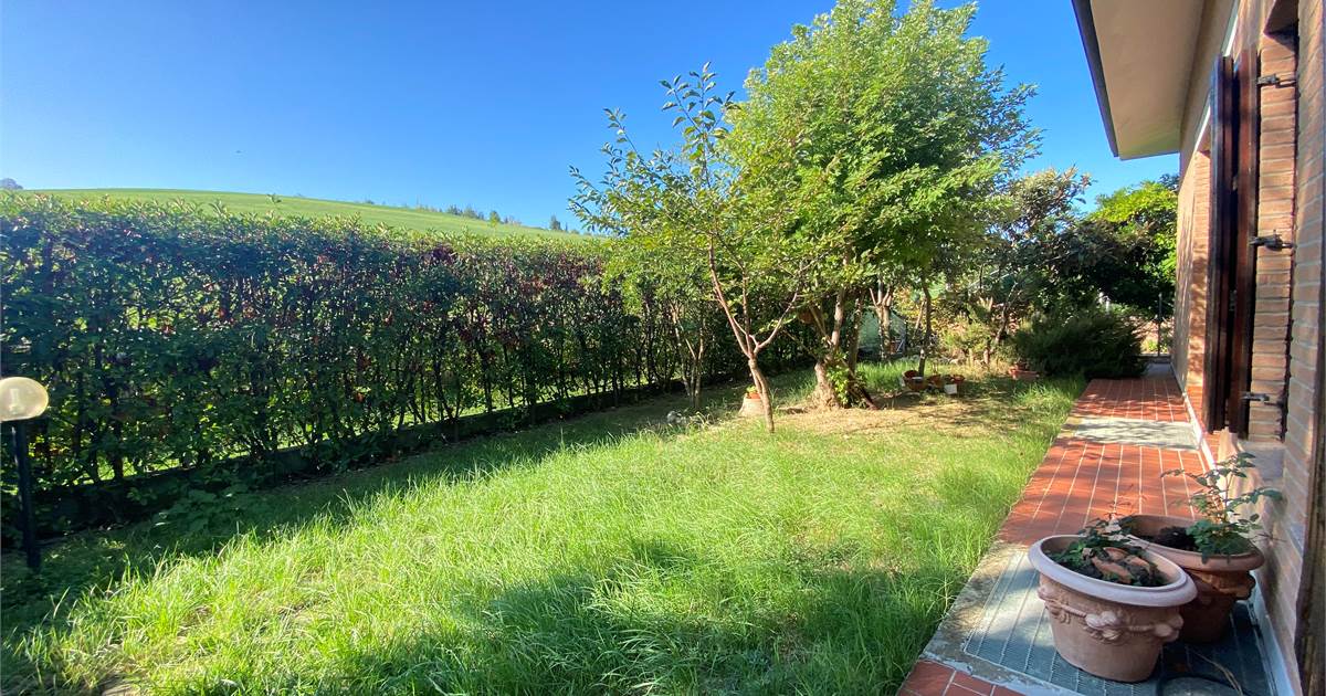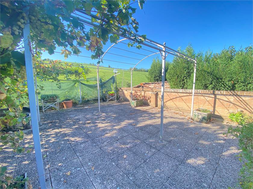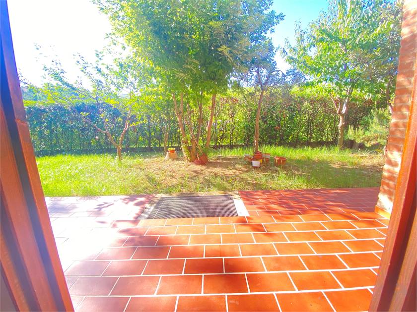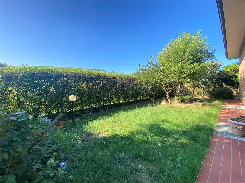 INGRESSO SU AMPIO GIARDINO DI PROPRIETÀ E VERANDA CON SPLENDIDO AFFACCIO SULLA COLLINA .